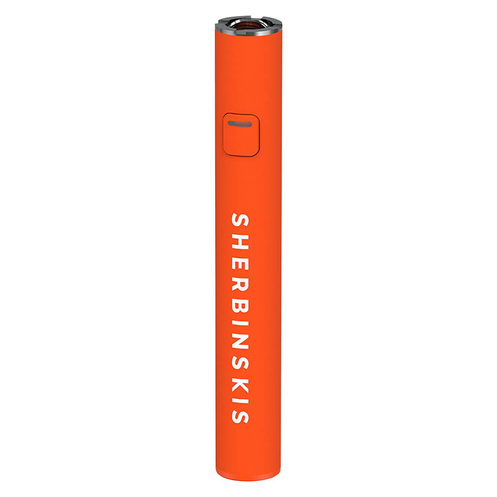 A premium soft-touch 510 battery in Sherbinskis' trademark Orange hue, the perfect compliment to Sherbinskis' cartridges.